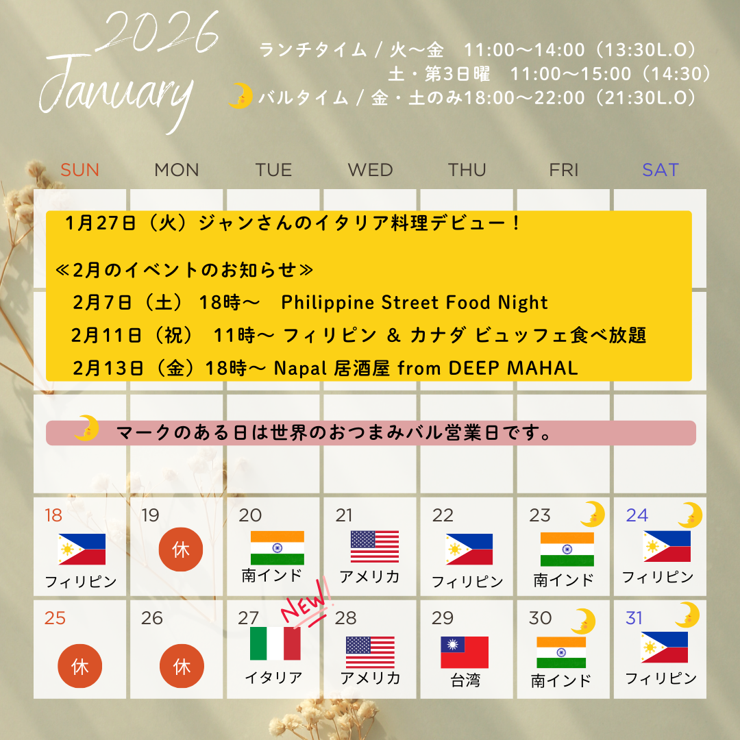 2026年2月後半の営業カレンダーができました。 2026 2/16 お知らせ・ブログ 目次2月後半の営業カレンダー 2026年の2月後半の営業カレンダーができました。 ご予約・お問い合わせはこちら お知らせ・ブログ よかったらシェアしてね! URLをコピーしました! URLをコピーしました! 2026年2月前半の営業カレンダーができました。 関連記事 2026年2月前半の営業カレンダーができました。 2026年1月30日 世界のおつまみバルスペシャルナイト! 2026年1月21日 2026年1月後半の営業カレンダーができました。 2026年1月18日 2026年1月前半の営業カレンダーができました。 2026年1月4日 ホームページを公開しました 2026年1月1日